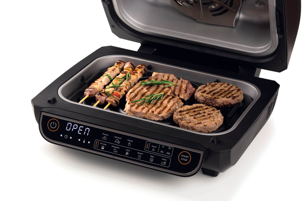 Rivoluziona la frittura ad aria e la tua cucina con Air Fryer Grill: friggitrice ad aria da 8L con le tradizionali funzioni di cottura più i 4 livelli di temperatura di una griglia e bistecchiera per grigliare ciò che vuoi. Air Fryer Grill ha 8 funzioni di cottura che ti permettono di friggere ad aria, grigliare, utilizzare le tradizionali funzioni del forno, essiccare, cuocere dalle pizze ai dolci e riscaldare. Sono presenti 4 livelli del ?grill? regolabili per una perfetta ed omogenea cottura delle pietanze: dal pollo al pesce, dagli spiedini ai filetti di carne, cuoci uniformemente e in poco tempo ingredienti sia freschi che surgelati usando poco o zero olio. Assapora il gusto di un autentico barbecue. La funzione Essiccazione permette di disidratare i cibi freschi in modo da ottenere listelli di carne secca, erbe aromatiche e snack.Air Fryer Grill dispone di un timer regolabile e la temperatura arriva fino a 230 gradi. Il display touch screen è semplice ed intuitivo per facilitare il settaggio delle impostazioni e sono disponibili tanti accessori per arricchire la tua cucina: griglia con rivestimento antiaderente, contenitore per la cottura e spazzolino per una pulizia più semplice e veloce.Con Air Fryer Grill potrai cucinare, friggere e grigliare in tutta sicurezza grazie allo spegnimento automatico con beep.