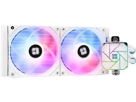 Thermalright Aqua Elite 240 WHITE ARGB V3. Tipo: Kit di raffreddamento a liquido, Diametro del ventilatore: 12 cm, Velocità (massima) di rotazione: 3300 Giri/min, pressione dell'aria massima: 1,53 mmH2O, Tipo di cuscinetto: Cuscinetto fluido dinamico (FDB). Colore del prodotto: Bianco